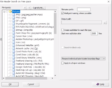 파일카빙을 위해 tools - disk tools - file recovery by type 을 선택함.