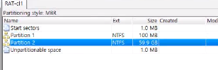 partition1, 2로 나뉘어져 있는데 100MB에 윈도우 운영체제와 파일이 모두 들어가 있을수 없으므로