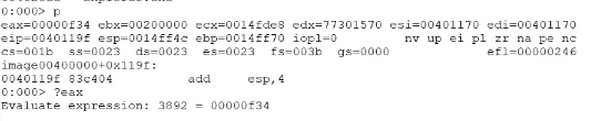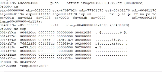 step over로 함수를 실행한후 확인해보면 explorer.exe의 pid 값은 3892인 것을 알수있다.