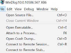 해당메모리를 확인하기위해 새로 디버거를 열어서 실행중인 프로세스를 열기위해 attach to a process를 클릭.