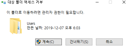 일반사용자가 관리자 권한이 필요한 작업을 하면 이러한 화면을 볼수있음.